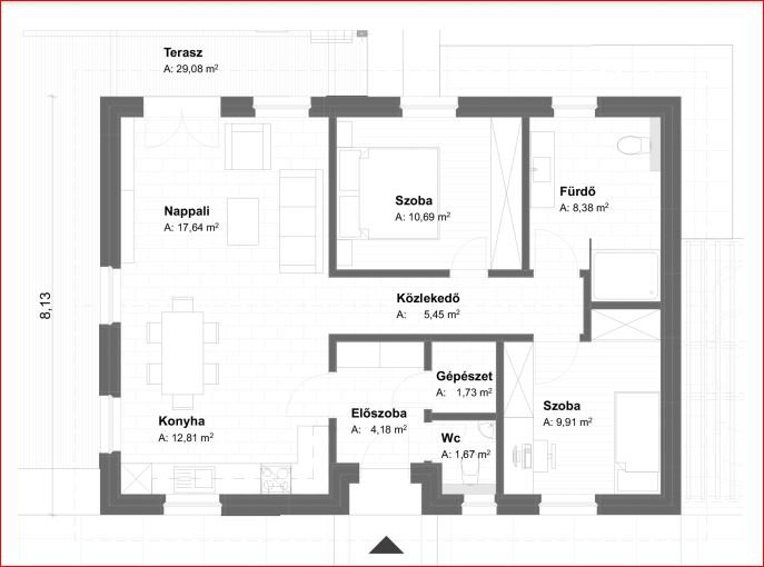 Bruttó alapterület: 91,83m2Hasznos alapterület: 72,46m2