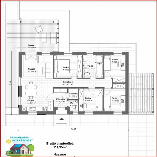 Bruttó alapterület: 114,95nmHasznos alapterület: 92,34nm